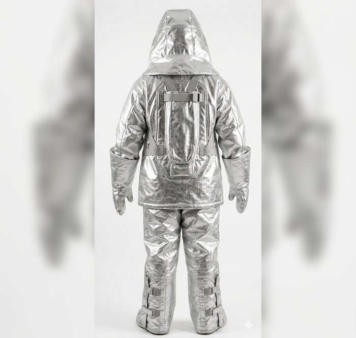 Jacket & Trousers: Specifically tailored to include a B.A. (Breathing Apparatus) Set provision on the back. This allows the wearer to carry oxygen tanks underneath the protective shell, shielding the life-support equipment from direct heat.